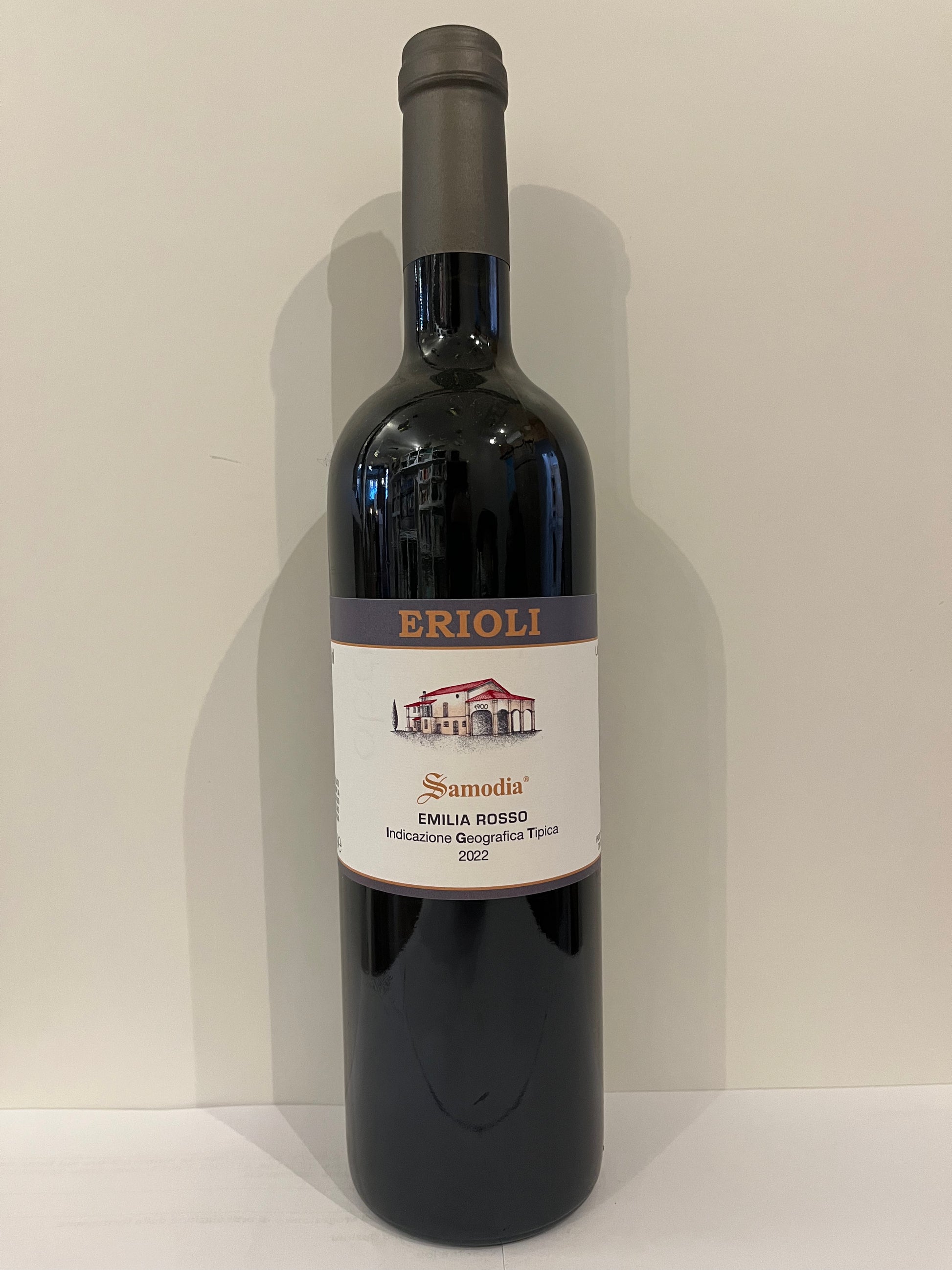 Samodia Rosso Emilia IGT Il "Samodia" è un rosso fermo di grande carattere prodotto da Erioli Giorgio Vini, nato da un prestigioso blend di uve internazionali e autoctone: 55% Cabernet Sauvignon, 30% Merlot e 15% Barbera. Questa unione crea un vino di notevole struttura, con un bouquet complesso e un potenziale di invecchiamento. È un rosso avvolgente che incarna l'eleganza dei vini bordolesi con il tocco distintivo dell'acidità emiliana.